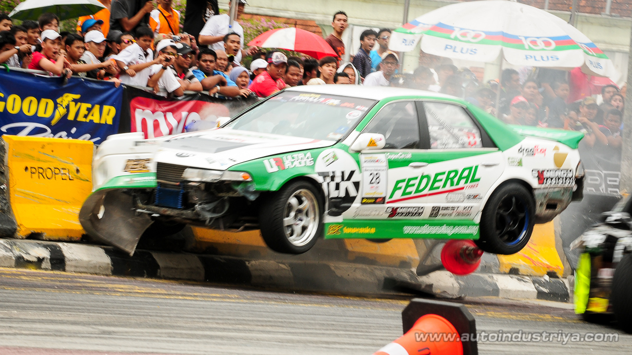The carnage continued during the morning practice for the second day of the event with car parts scattering all over the track. Ending his day early was local driver Nazrul Afifi whose Nissan Cefiro A31 suffered a bad crash in practice. Charles Ng had another argument with the barriers further damaging the rear end of his Toyota Chaser forcing his crew to remove the trunk and work double-time for the car to make it through.