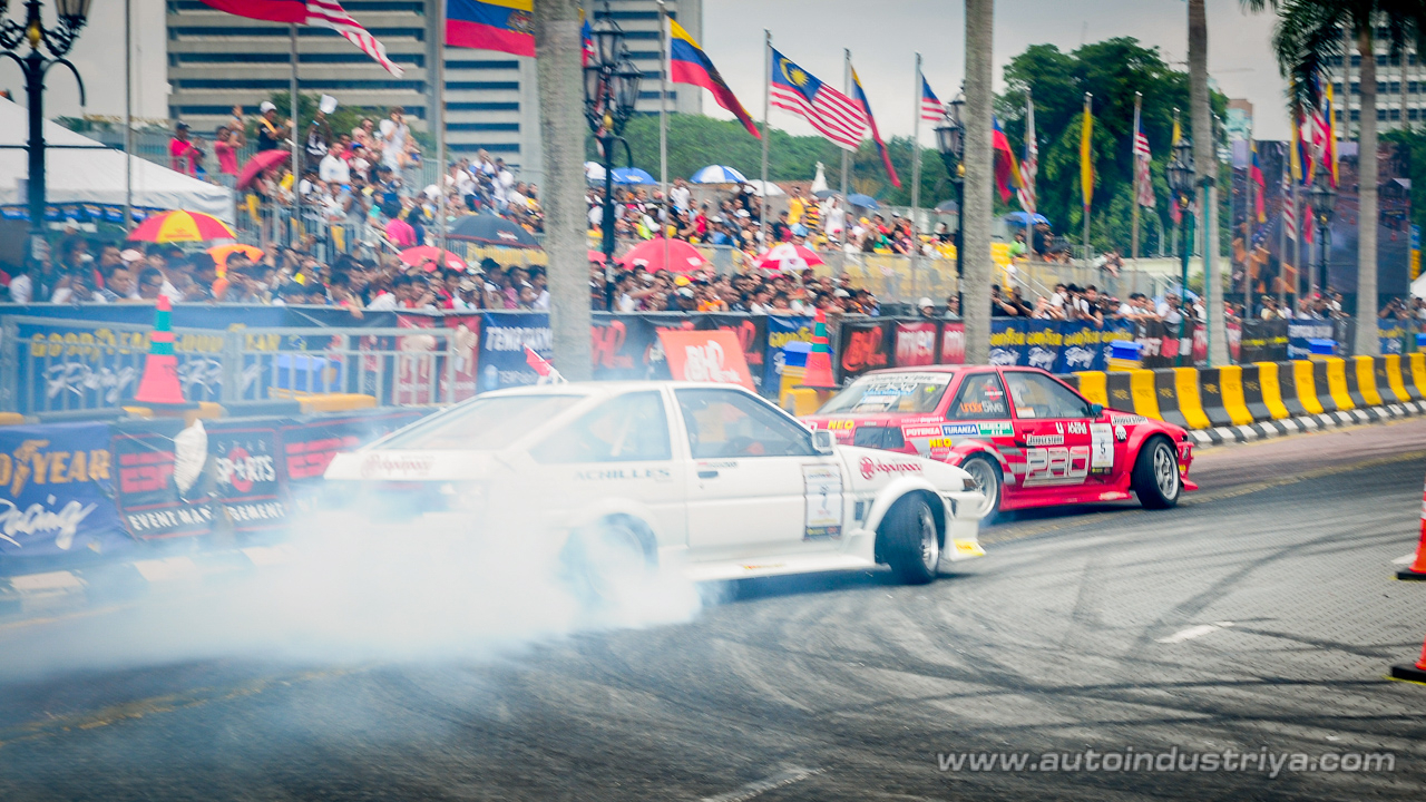 Emmanuel Adwitya Amandio made the best out of his newly acquired Toyota AE86 (reportedly RM100,000; because his car didn't make it out from customs) outdrove Tan Tat Wei in his rotary engine powered Toyota AE86 to advance;