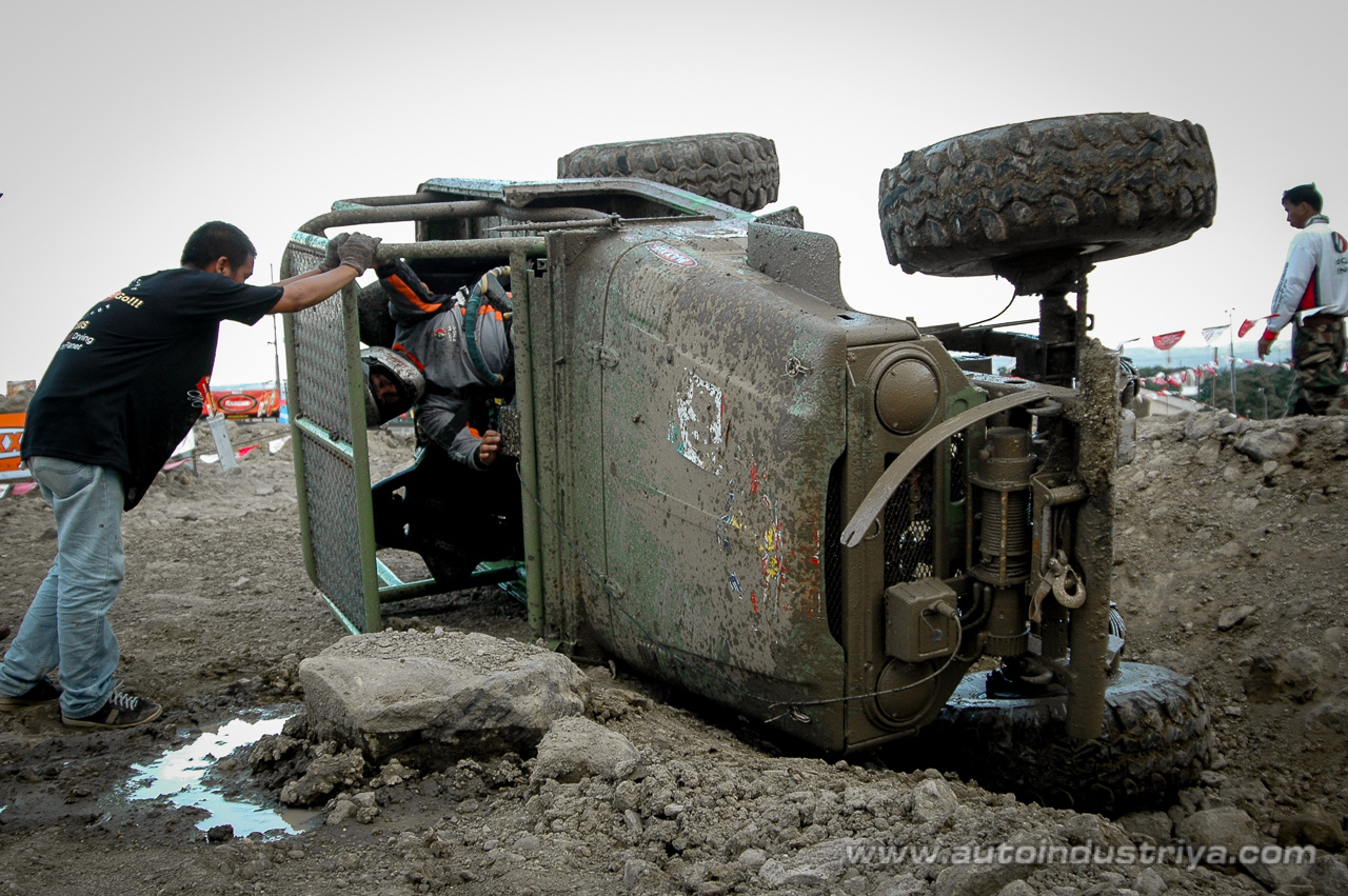 Hard as it may have seemed, more than half of the competitors showed their champion skills finishing the track well under the allowed time of 15 minutes. Perhaps the most commendable of all would be Roger Peyra who still managed to finished with a broken propeller shaft from midway through the race, which meant that he was only able to run in two-wheel-drive on such a difficult track. This also eliminated any chance of Peyra getting into the top 3. A very disappointing race however for John Sambo of the Manila Off-Roaders Inc., who rolled his truck over as he was about to exit the reverse horseshoe obstacle which was mere seconds away from the finish line. Another disappointing run was that of top-seeded Hirryan Mendiola whose vehicle decided to stall due to electrical problems in the middle of the mud pit. Luckily they were able to restart the vehicle, but the time lost removed all his chances for the top prize.