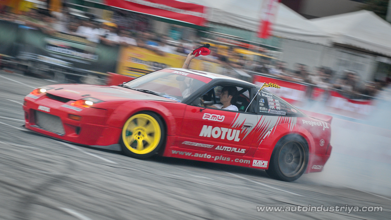 The top 16 qualifiers who will battle each other out in tandem runs were Team Yellow Cab's Alex "X" Perez versus Rannie Ronquillo of R33; Paolo Agregado versus Gio Rodriguez who makes his drift comeback after a four-year hiatus driving for Team AutoIndustriya.com-Kumho Tires-A-toy Bodykits; Ian "The King" King versus Francisco "Pacho" Blanco of Autoplus-Motul; Kevin "Bad News" Tayao versus Ryan Agoncillo of Team Yellow Cab; Jet Mathay versus John Boban of Team Drift Tech; Chukri "Captain Shakey's" Prieto versus Bryan Revilla; Tuason Racing's Audel Sison versus Raymond "Mister R33" Ronquillo; Naji Kassouf of Autosport versus Boodie Dabasol.