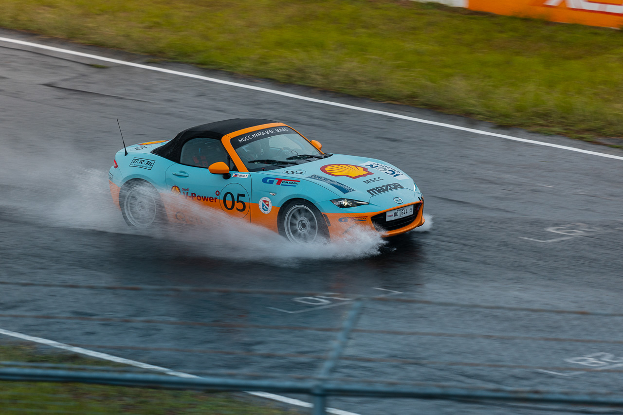 A custom stainless steel exhaust system, developed by local company Drift Xaust, maximizes airflow and highlights the racing note emanating from the MX-5’s 184 PS engine. Last but not least, a Sparco R345 competition steering wheel, Grid-Q racing seats, and four-point harness, as well as a CUSCO 6-point roll cage and safety net, are installed to secure the drivers’ control and safety on and off the track.
