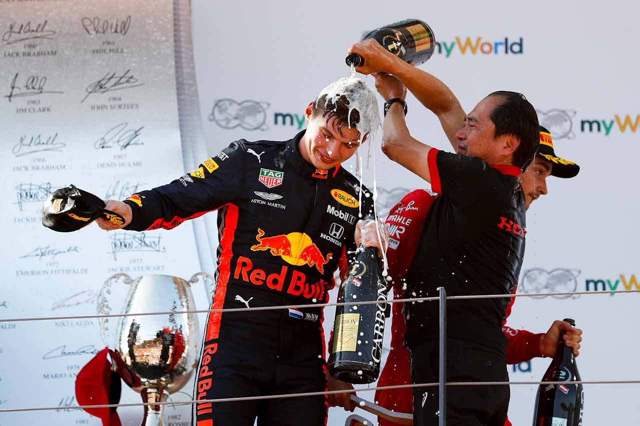 Toyoharu Tanabe, technical director for Honda Racing F1, was elated by the victory. “Thanks to the efforts of all the Honda F1 staff in Japan and the UK, who worked tirelessly on our PU development, we finally made it, our first win in the hybrid era, the first since Hungary 2006. And a special word of thanks to all their families who supported them. Thanks of course to Max for a great drive and to Aston Martin Red Bull Racing for providing him with a fantastic car,” said Tanabe.