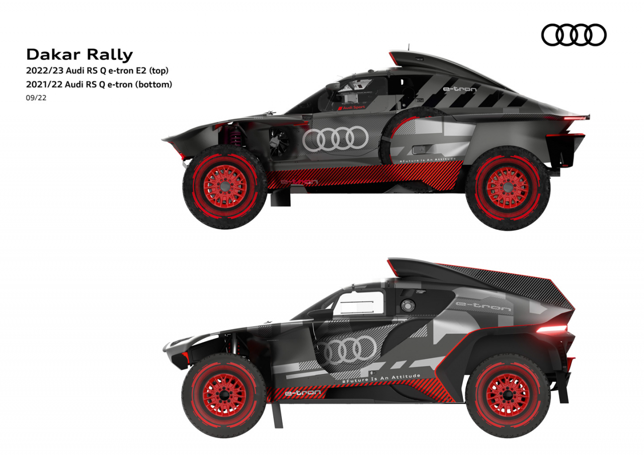 According to Audi's chief designer Axel Löffler, the RS Q e-tron E2 did not adopt a single body part from its predecessor. And thus, the rally raid vehicle was redesigned from the ground up.