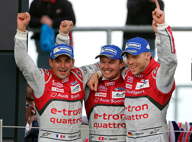Audi's Marcel Fassler, Benoit Treluyer and Andre Lotterer won the 6 Hours of Silverstone