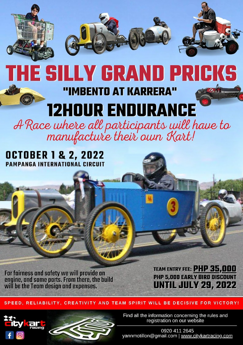 That's right. CityKart Racing is proud to announce The Silly Grand Pricks “Imbento at Karrera” 12-hour endurance kart race, which is scheduled to happen at the Pampanga International Circuit on October 1-2.