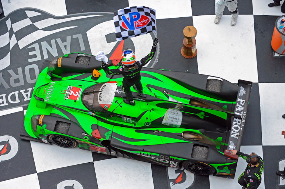 24 hours later, a newcomer to the IMSA Sportscar Championship found himself steering his car to victory. 22-year-old Pipo Derani in the Extreme Speed Motorsports Honda Ligier JS P2 took the lead with an hour and 17 minutes left in the race and pulled away from there, giving Team Tequila Patron ESM the victory.