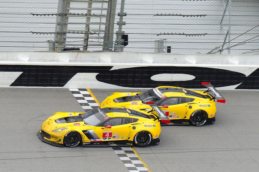 Perhaps what got the crowd talking most about was the finish of the GT Le Mans (GTLM) class wherein a pair of Corvette GTLM cars (#3 and #4) driven by Antonio Garcia and Oliver Gavin spent the last 15 minutes of the race neck and neck and tussling for the lead, only to be decided by a photo finish at the checkered flag. The pair of C7Rs finished with only a 0.034 second gap between them, with Gavin taking the lead by a whisker from his teammate.