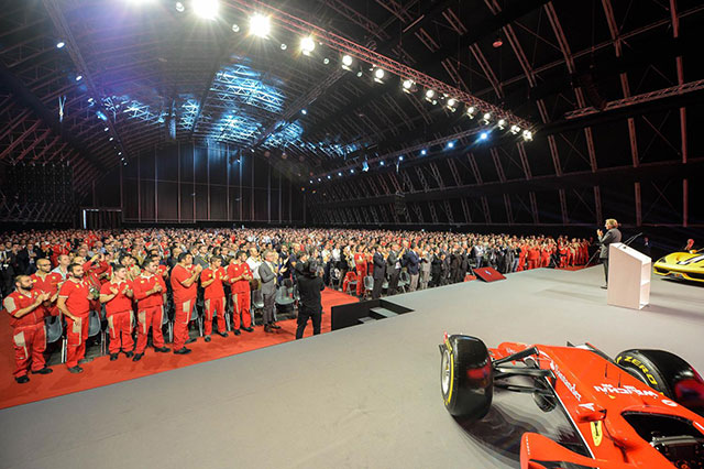 Luca di Montezemolo then took to the stage and addressed the importance of the Maranello workers several times.