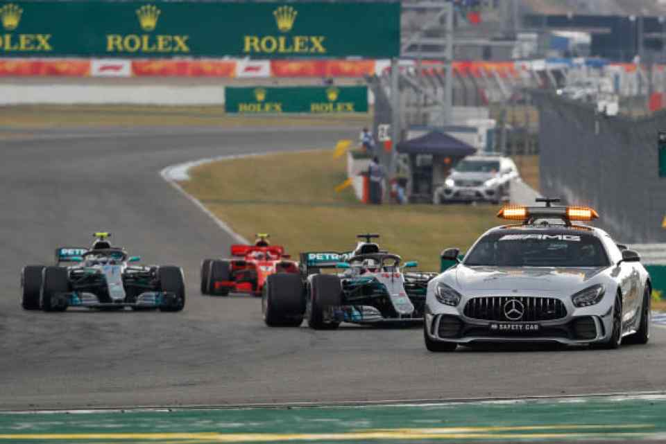 It was impeccable timing for Mercedes-AMG as Kimi Raikkonen had pitted, putting Hamilton in front. On top of that, Vettel's crash had put Hamilton out in front, with team mate Valtteri Bottas just behind him in second. On top of that, the safety car was brought out, equalizing the field.