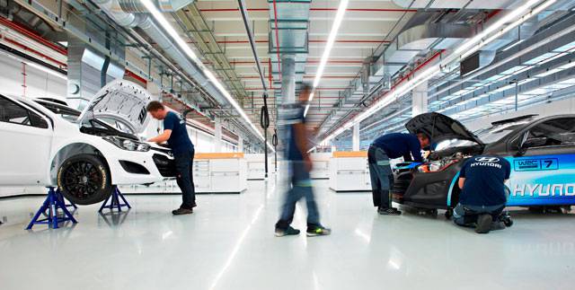 Hyundai Motorsport center occupies 8,200 square meters of space and employs multinational staff members.