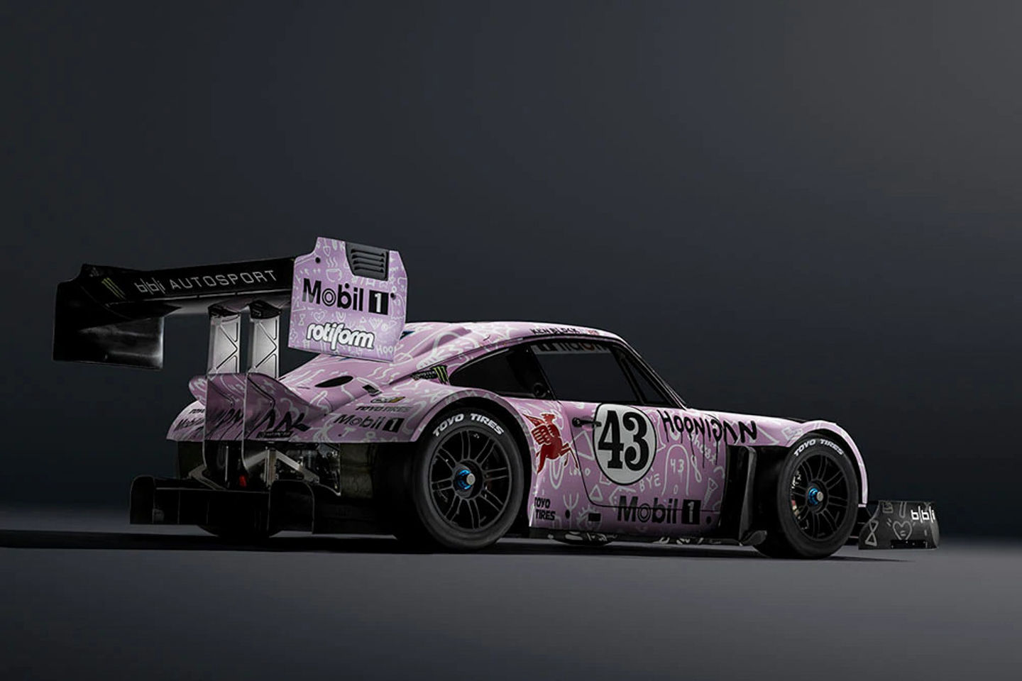 Intended as the world's most insane Porsche race car ever built, the “Hoonipigasus” wears a livery that pays homage to the 1971 Porsche 917/20 “Pink Pig”.