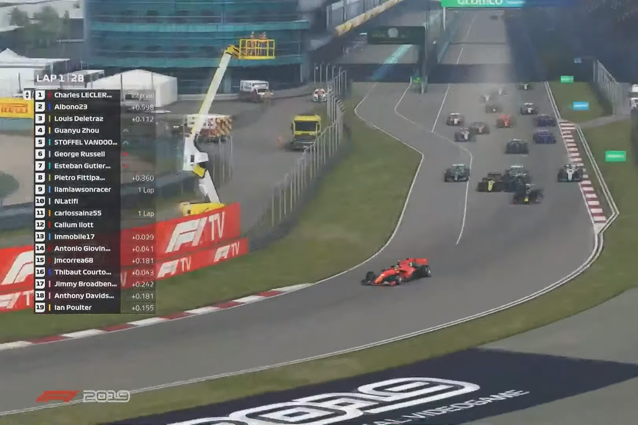Competing once more against the likes of Lando Norris, Carlos Sainz Jr., Alex Albon, George Russel, Stoffel Vandoorne, and Antonion Giovinazzi, the young Ferrari driver was able to take the checkered flag in a 28-lap race on Codemasters' F1 2019.