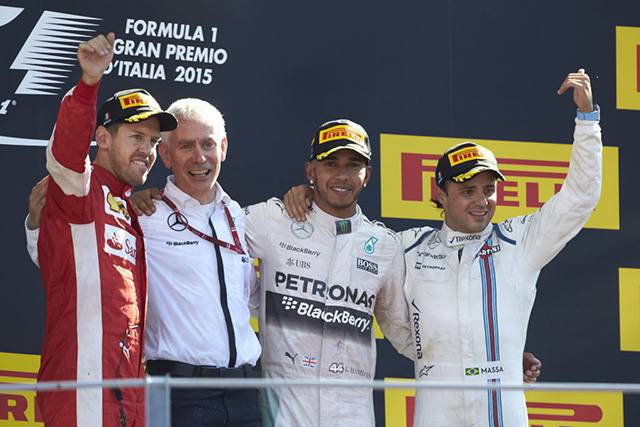 Williams' drivers Felipe Massa and Valterri Bottas contended with one another during the latter part of the race in a bid to secure third place. Felipe Massa proved to be the better of the two as the Brazilian was able to hold off the Finnish driver, winning the 2015 Italian Grand Prix in third place.