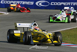 Chinese driver Congfu Cheng had a steady race behind the frontrunners to finish a comfortable fourth, A1 Team China's highest A1GP finish so far, while A1 Team Czech Republic's Tomas Enge used his local knowledge to the full to secure fifth despite sustained pressure from the blue and red USA car. Last week's Sprint race winners South Africa were however unable to repeat their Zandvoort success when the master switch failed on the fourth lap, bringing Stephen Simpson's race to a premature end.