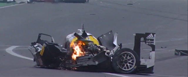 In a report by BBC, Webber's Porsche 919 Hybrid collided with Matteo Cressoni's vehicle during the six hour endurance race. Based on the video posted below, the impact destroyed Webber's vehicle.