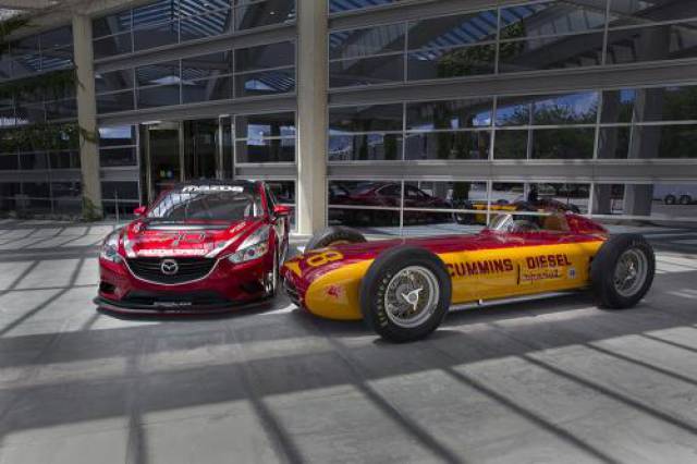 The Mazda6 SKYACTIV-D Clean Diesel racecar will run at Indianapolis Motor Speedway this week. This appearance follows the absence of a diesel-powered racecar on the track for 60 years. The last time Indy had seen one was back in the 1952 Indianapolis 500 with the appearance of Cummins Diesel Special.