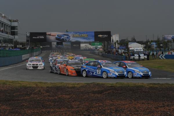 Alain Menu sprinted his Chevrolet Cruze past the start from his second consecutive pole for the season at the Shanghai International Circuit for Rounds 21 of the FIA World Touring Car Championship. Following in tow were his teammate Rob Huff; Colin Turkington of Wiechers-Sport and Norbert Michelisz of Zengo Dension, both in BMWs.