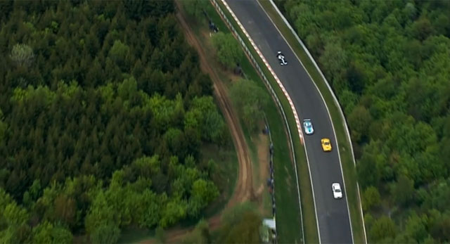 Somewhere near the 3:30 minute marker, the SLS AMG GT3 and the Silver Arrow can be seen overtaking the two cars that went ahead of them, soon after, the Silver Arrow finished ahead of the pack before the 20.832 Km lap was completed.