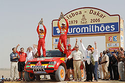 Mitsubishi Motors made history today when its Pajero / Montero Evolution crew of Luc Alphand and Gilles Picard won the 2006 Dakar Rally, claiming a record-breaking 11th overall victory and sixth consecutive win for the Japanese manufacturer on this legendary rally. Repsol Mitsubishi Ralliart team-mates Joan 'Nani' Roma and Henri Magne also finished on the podium in third position, while defending champions Stéphane Peterhansel and Jean-Paul Cottret took fourth overall.
