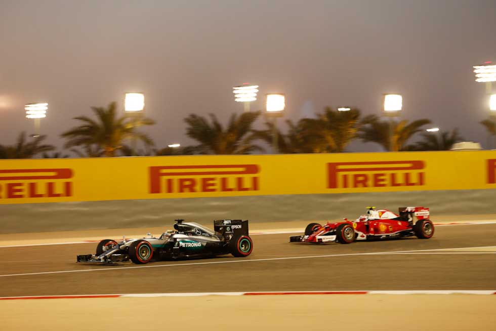 Finishing behind him was Bahrain podium regular Kimi Raikkonen. As strong as Raikkonen's performance was, the flawless run from Rosberg meant that the Finn was never able to see the back of the Mercedes-AMG racer as the German kept posting the fastest laps of the night. Finishing third was Rosberg's team mate, Lewis Hamilton. Hamilton had a difficult race this round, nearly being spun out by Valtteri Bottas and damaging is right side pod. Despite that, Hamilton was able to clinch the final podium step.