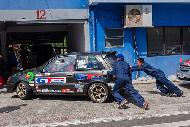 Racing started at 8:25am with all cars making it thru safely, signaling the beginning of an eight hour test of man and machine. The first hour of racing was quite close, with Team Full Throttle Performance taking the early lead. The first round of pit stops came during the first 2-hours of the race. Positions swapped and the lead was inherited by the only turbocharged car on the grid, a Toyota Starlet by GNOME racing. Notable was the incredible stamina of the drivers, particularly the Canete Brothers of Cagayan De Oro who divided the whole race among the two of them, with the longest stint of 4.5 hours by Macky Canete before handing over the car to his brother Nico.