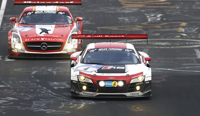Driven by Christopher Haase, Christian Mamerow, Rene Rast and Markus Winkelhock, which is the same team that won it for Audi in 2012, the #4 Audi R8 LMS ultra kept swapping positions with Lance David Arnold, Jeroen Bleekemolen, Christian Menzel and Andreas Simonsen in the #1 Mercedes SLS all throughout the night before finally staying in front in the final 6 hours of the race. The Rowe Racing Mercedes-Benz SLS AMG GT3 completed the podium 2 laps behind. Completing the top 5 were the #44 Falken Motorsports Porsche 911 GT3 R and the #007 Aston Martin Racing Vantage GT3.