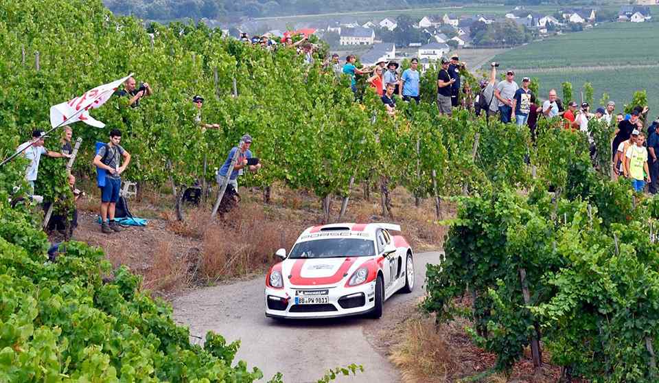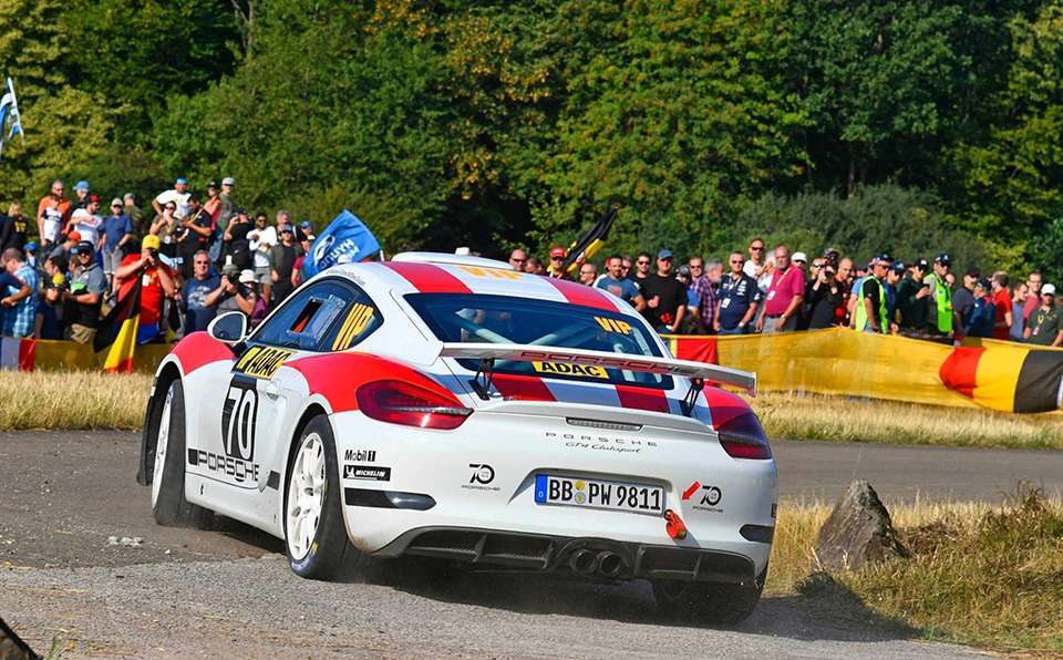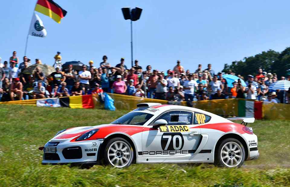 Porsche raced the Cayman GT4 Clubsport Rally concept through Rallye Deutschland