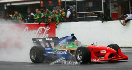 A1 Team South Africa secured its second A1GP race win of the season in this afternoon's action-packed Feature race at Sydney's Eastern Creek Raceway, closing the gap to third-placed Switzerland in the championship standings. The weekend brought the championship battle even closer together with leaders New Zealand and France both heading to the next race in Durban, South Africa on 96 points.