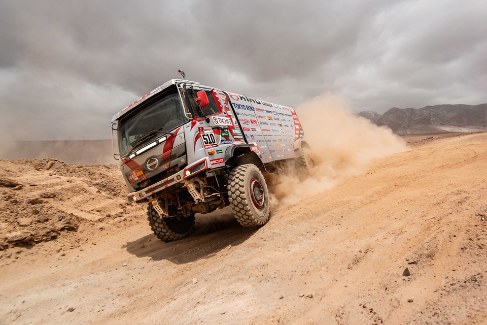 In the truck category (10-liter engine or smaller), Hino Team Sugawara finished in first place once again, capturing their tenth consecutive victory in the grueling event. The Hino Ranger was driven by Teruhito Sugawara and navigated by Katsumi Hamura.