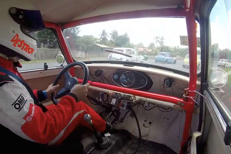 What you're looking at is race car driver Jason Choachuy and his classic Mini Cooper. He's taking part in a one-make, multi-class Philmini club race at the Batangas Racing Circuit in the Philippines.