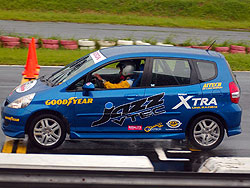 Despite the unfavorable weather conditions, the four official Jazz Vtec cars were pushed to the limits. After more than 150 rounds around the track by the media speedsters, Petron Xtra Unleaded Gasoline proved true to its tag line of "Power for Xtra miles," by consuming only 1/4 tank of fuel, per car, throughout the race day. The Goodyear Eagle NCT 5 tires, which are the original equipment tires of the Honda Jazz Vtec, provided superior handling and braking in both wet and dry conditions.