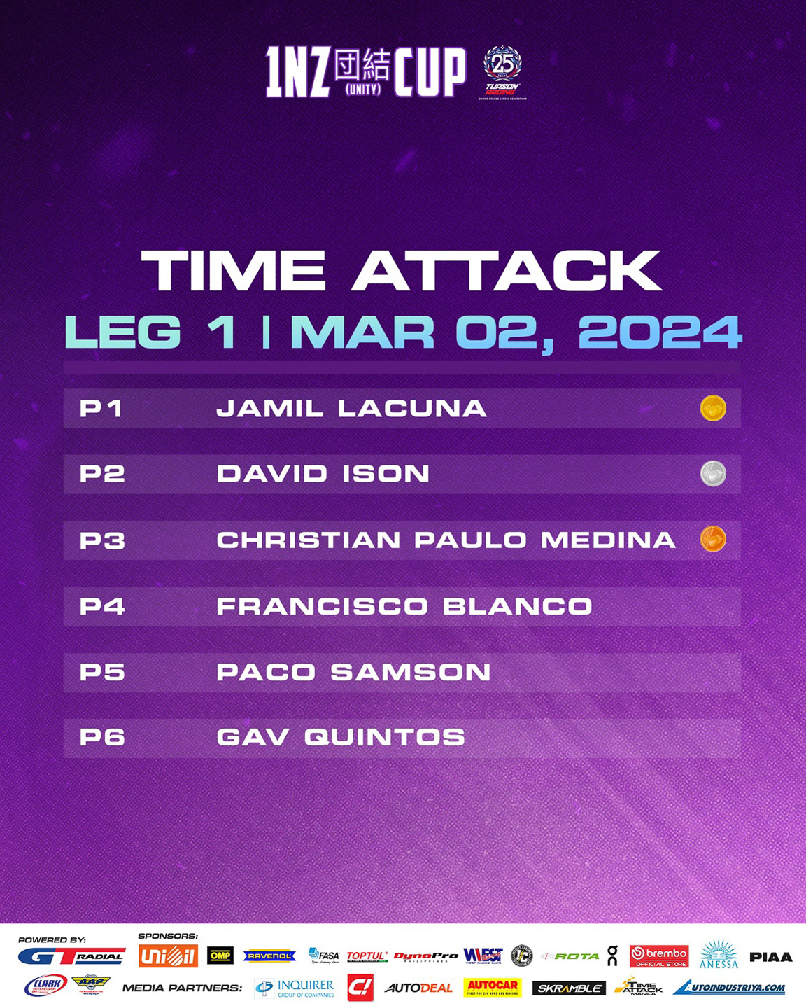 In the 1NZ Cup Time Attack, it was Autoindustriya.com’s very own Jamil Lacuna who topped the timesheets, ahead of 14-year-old Sim Racing driver Enzo Ison and Paulo Medina of HG Autoworks and Atom Tech films.