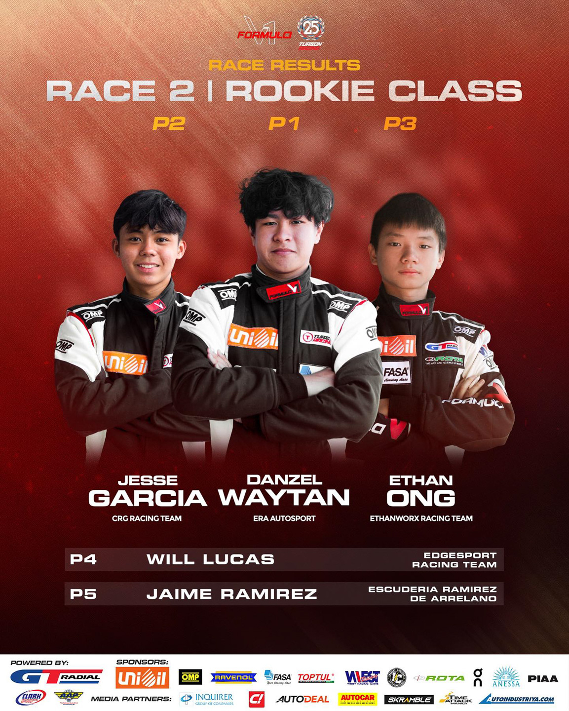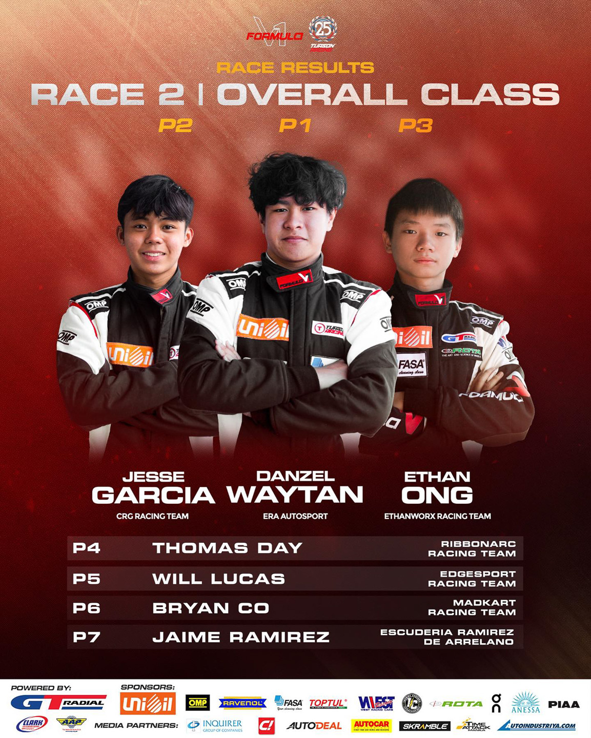 In the Formula V1 grid, the race featured karting prodigies Danzel Waytan and Jesse Garcia from CRG-ERA Autosport, Will Lucas of Edgesport Racing Team, and Ethan Ong from Ethanworkx Racing Team. Alongside these young drivers are 2023 AM Class Champion Bryan Co of the MadKart racing team, Jaime Ramirez of Scudería Ramírez de Arellano, and Thomas Day, who came all the way from the UK to represent Ribbon Arc Racing Team.