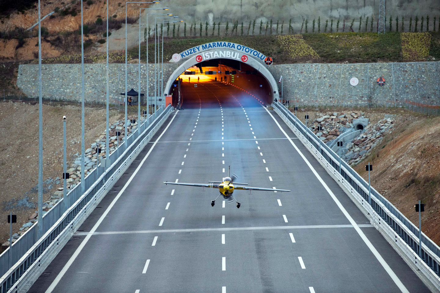 The Catalca Tunnels tunnel, where the stunt was performed, wasn't short either. The distance from takeoff to the exit of the second tunnel was 2.26 km, and he had to fly for a total of 43.44 seconds. The plane wasn't a slouch either, averaging 245 km/h in the second tunnel. More importantly, the tunnels aren't exactly straight.