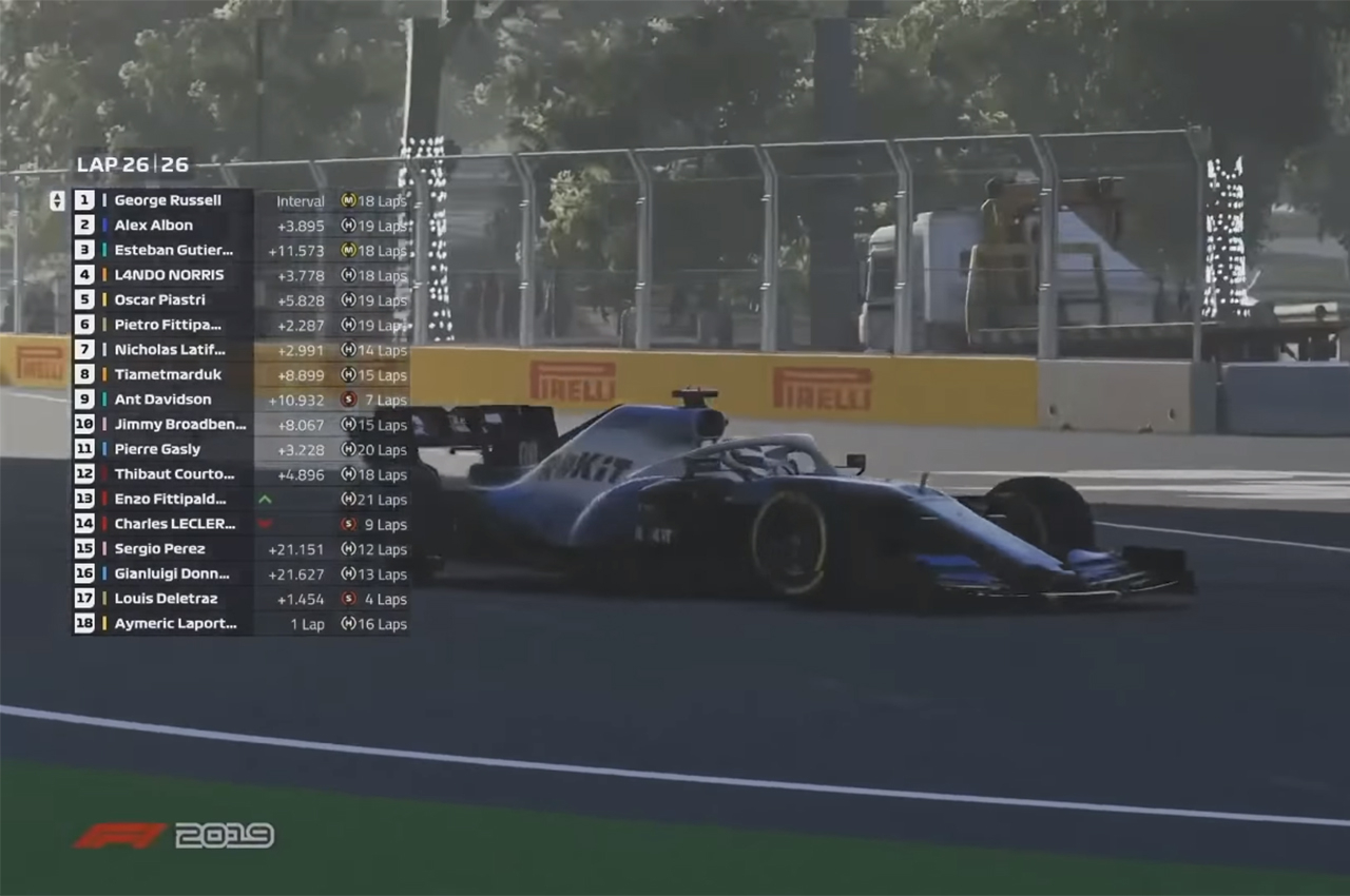 After managing to secure first place in qualifying, Williams was able to cleanly get away from the pack once the lights went out. Not far behind Russell was Albon who started out in second. Throughout the 26-lap race in Baku, the two young drivers were in contention of winning the Virtual Azerbaijan Grand Prix, opting for different strategies to edge out one another.