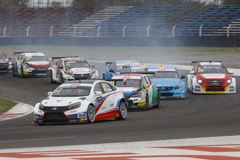 Erchlacher started the opening race on pole with Sebastien Loeb Racing drivers Tom Chilton and Mehdi Bennani right behind him. When the race began, Chilton had a good jump on Erchlacher but the Lada driver was able to cover the inside line to keep the lead. He was able to hold on to first until Chilton punted him out of the way.