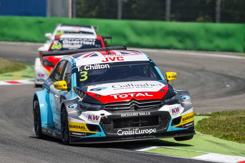 By the third lap, Michelisz was charging hard towards Bennani and made a bold attempt to pass at the Parabolica corner. Bennani turned in on the side of Michelisz, sending the two off the track and into retirement. Because of that, Chilton inherited the lead and was unchallenged for most of the race. Guerrieri meanwhile held on to second place but was soon under threat from Rob Huff. With a cleaner exit on to the main straight, Huff overtook Guerrieri just before the first chicane.