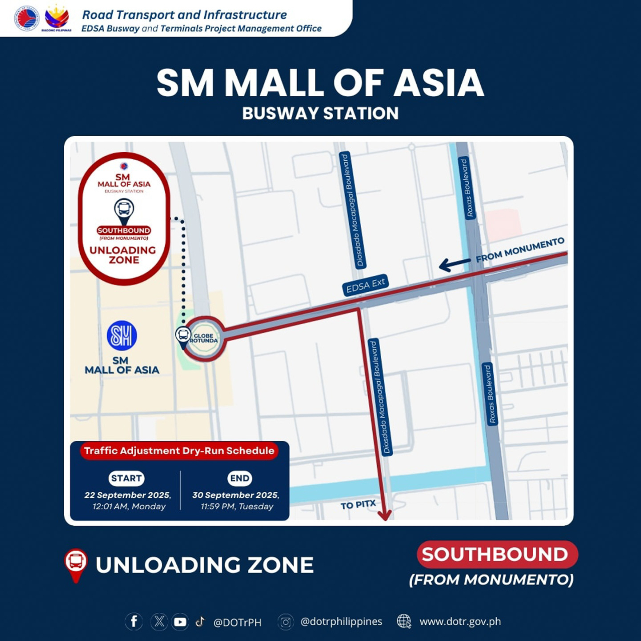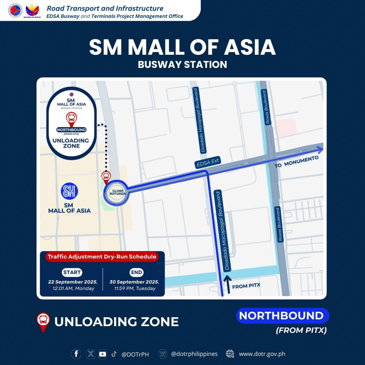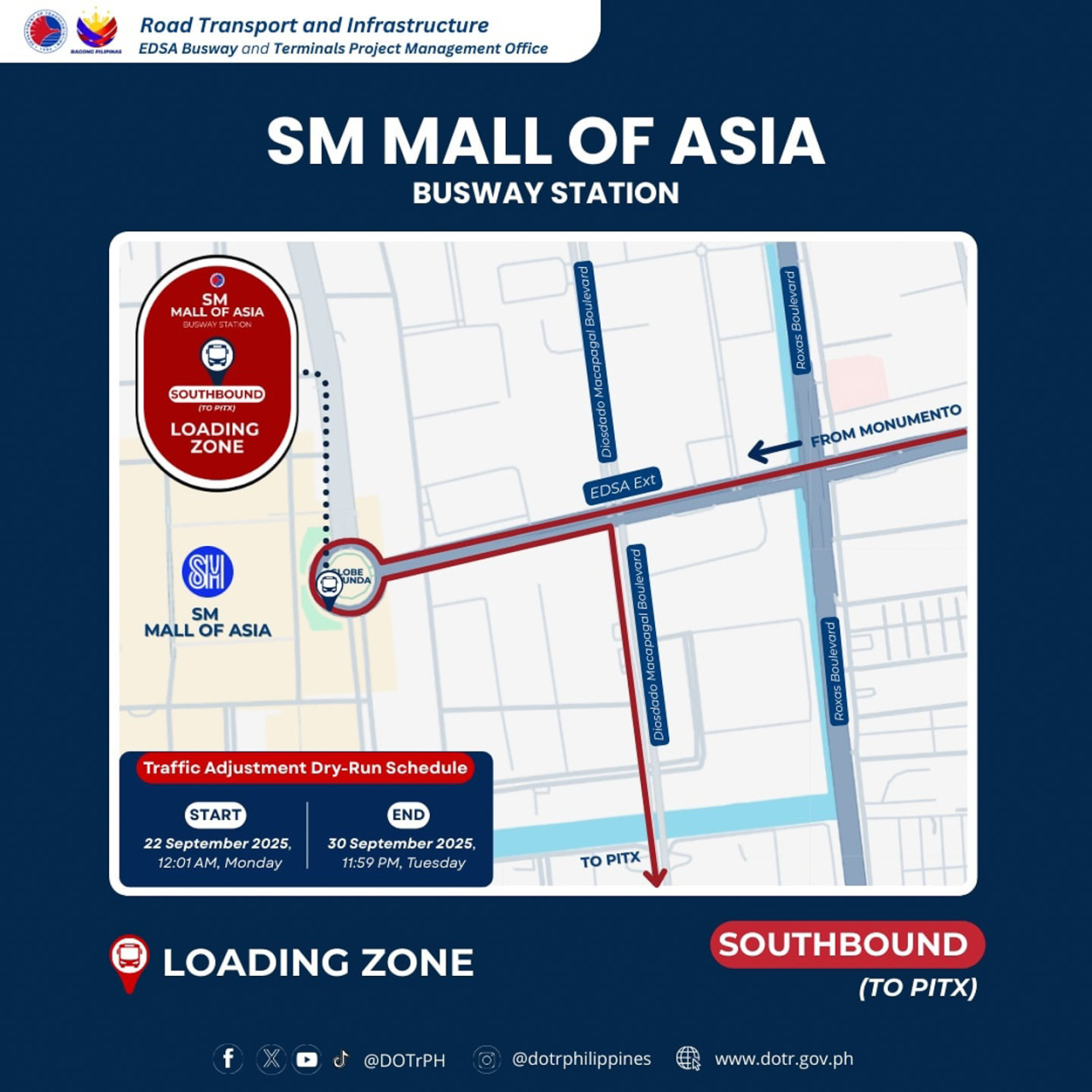 DOTr has announced they are adding a new Northbound stop at the SM Mall of Asia Busway Station, which complements the existing Southbound stop being utilized by buses going to PITX.