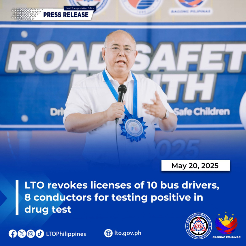 The revoked licenses included those of 10 drivers and six conductors from Victory Liner. Additionally, two conductors from Solid North Transport, Inc. had their licenses revoked following a drug test conducted on May 5th.